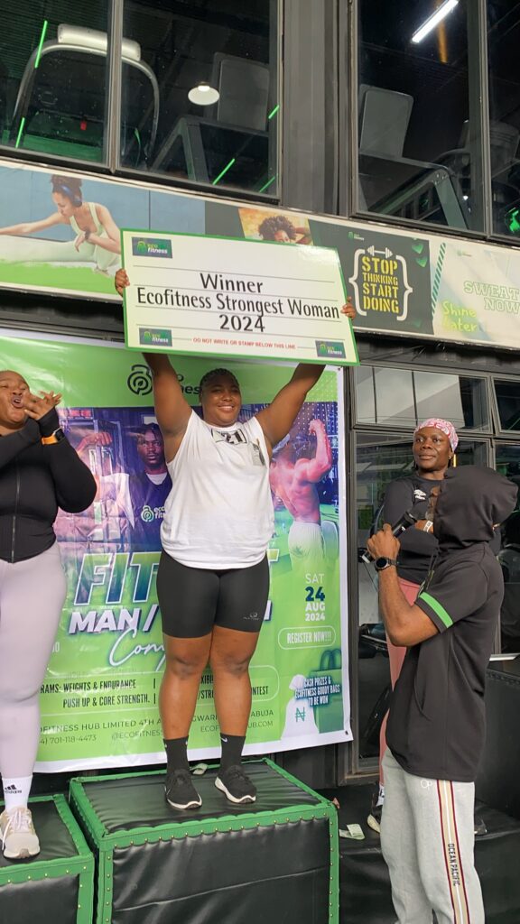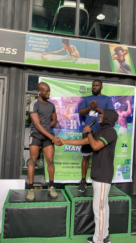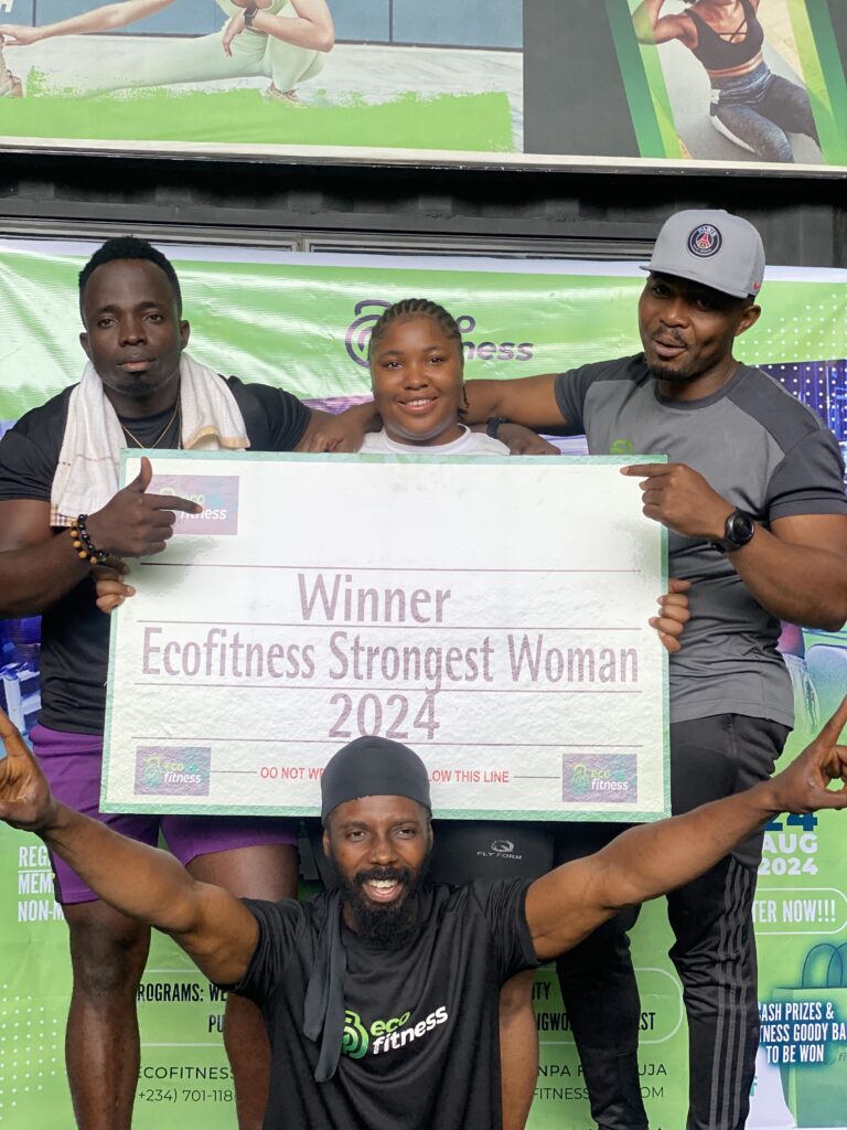 The Fittest Man/Woman Competition stands out as one of Ecofitness’ signature events, designed to celebrate strength, endurance, and overall wellness within the community. Held on August 24th, 2024, at the Ecofitness Hub in Gwarinpa, Abuja, the event featured exciting challenges ranging from weights and endurance to cardio, flexibility, push-ups, core strength, and the strongman/strongwoman contest.